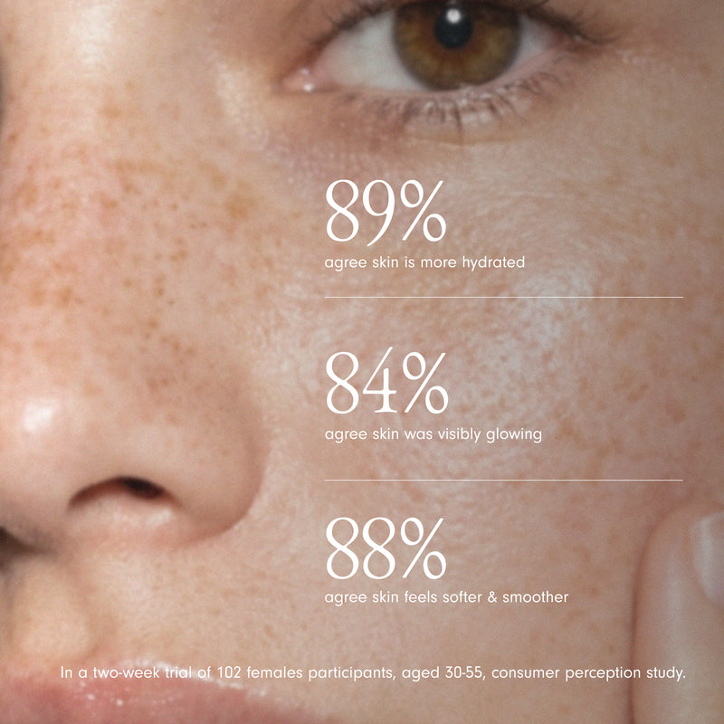 Our famous hydration hero quickly gets to work on tired skin by re-oxygenating cells and supporting the skin’s microbiome. It counters dullness, dehydration, and the effects of long-term stress and pollution, so skin feels restored and looks plumped and juicy.