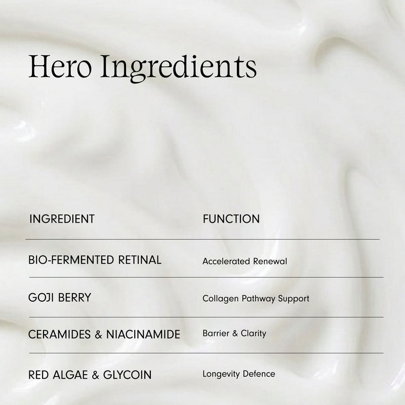 Your go-to anti-ager that targets the effects of cortisol, stress, and collagen-damaging glycation for boosted skin longevity and a plumper, juicier, more defined complexion.